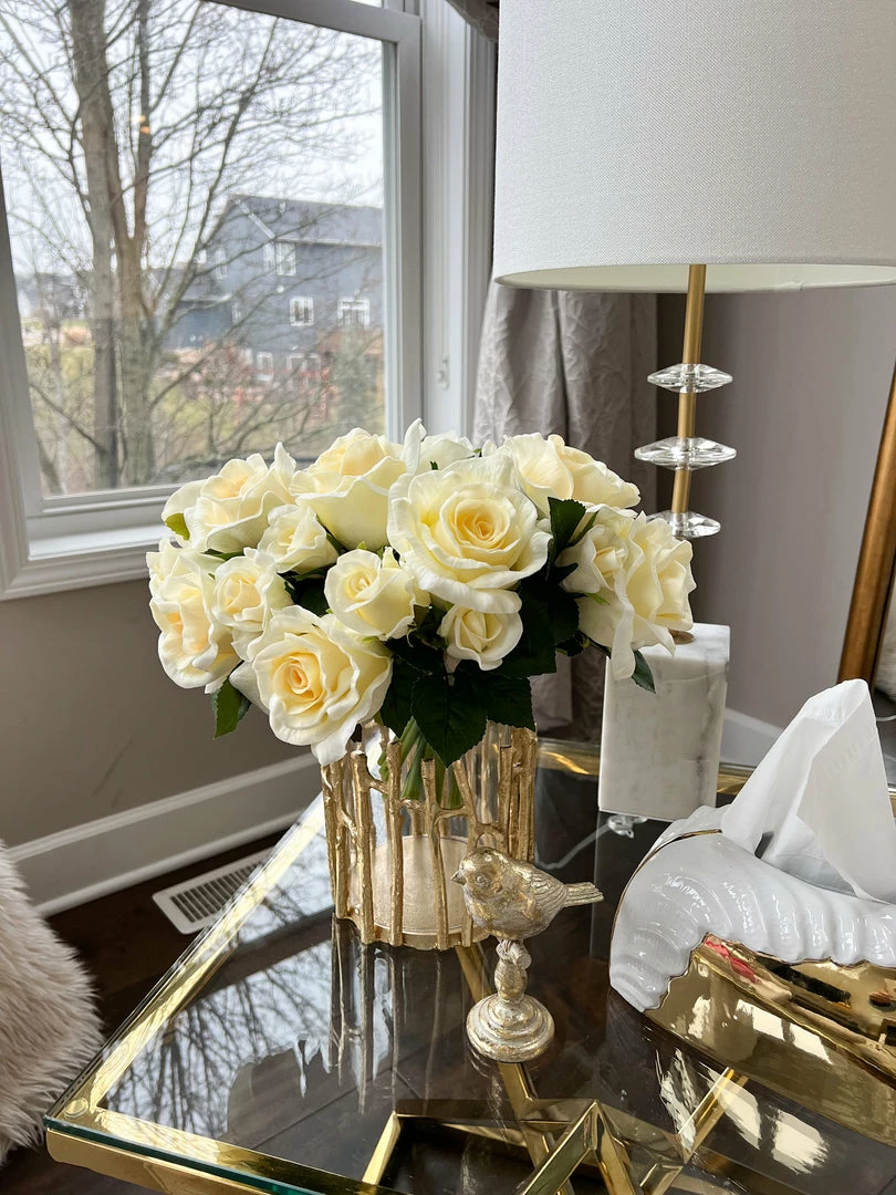 Description: This real-touch rose white bundle is gorgeous! These roses are beautiful on their own or styled with other faux florals.