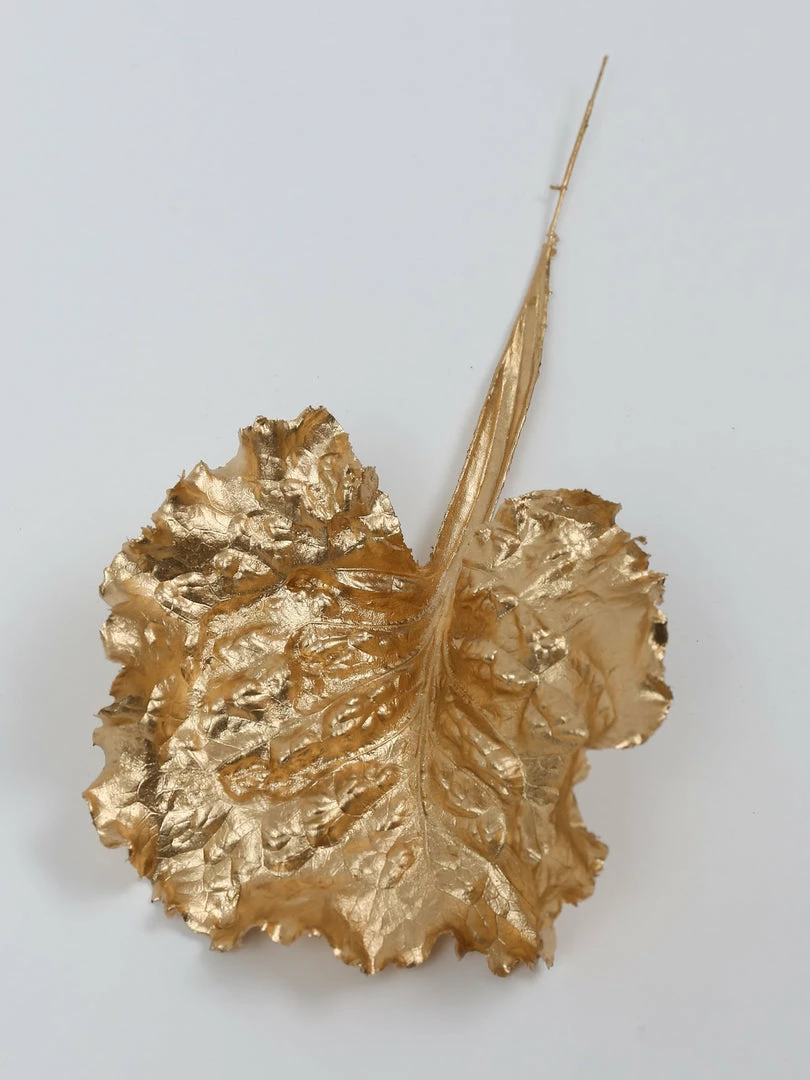 Description: This golden metallic ruffled leaf spray will add a touch of glamour to your holiday displays or floral arrangements all year round!