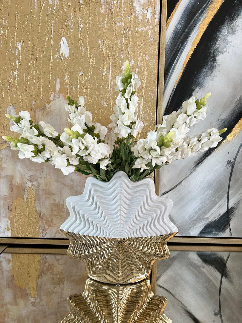 Inspire Me! Home Decor White Ceramic Vase With Stunning Gold Floral Detailed Center