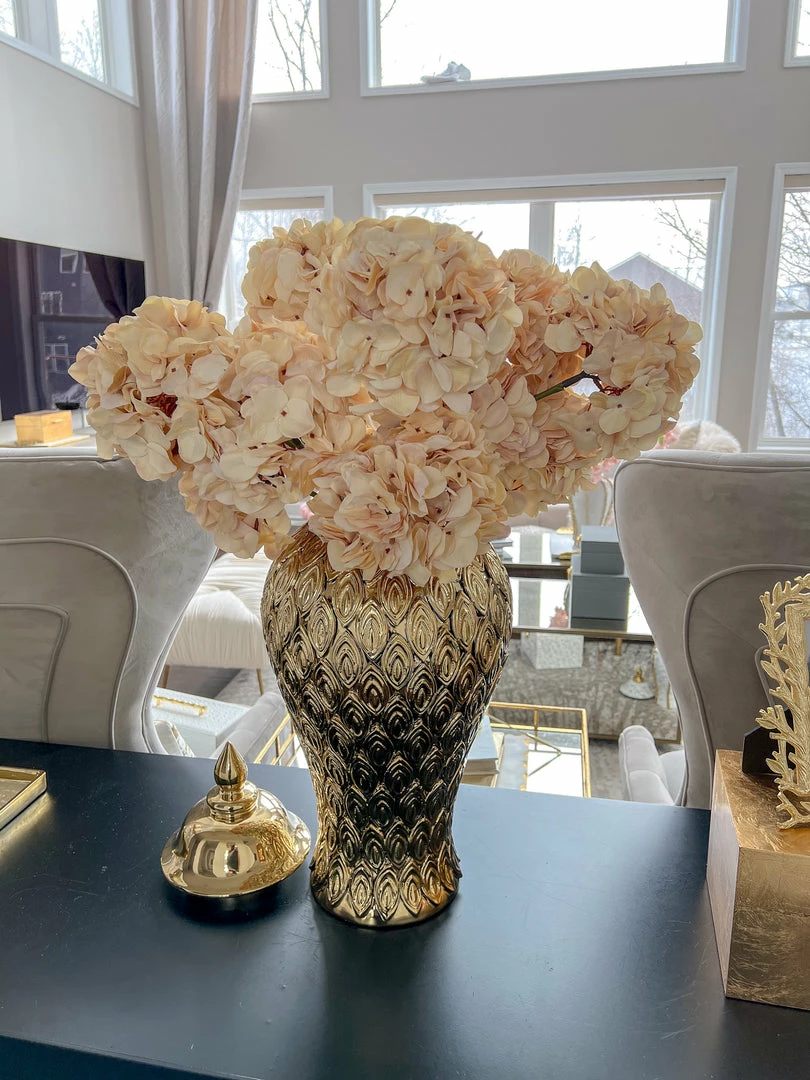 Description: This beige hydrangea is stunning during any season. Style in a bowl or vase for an elegant look in your space.