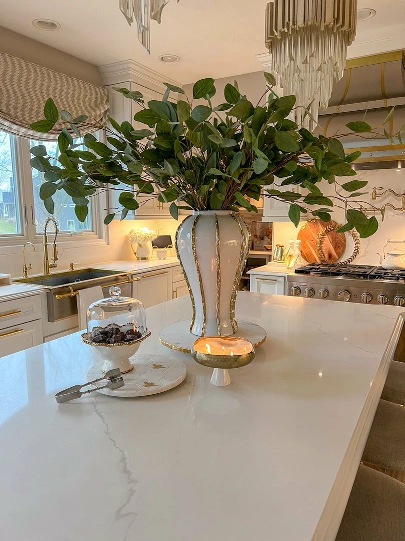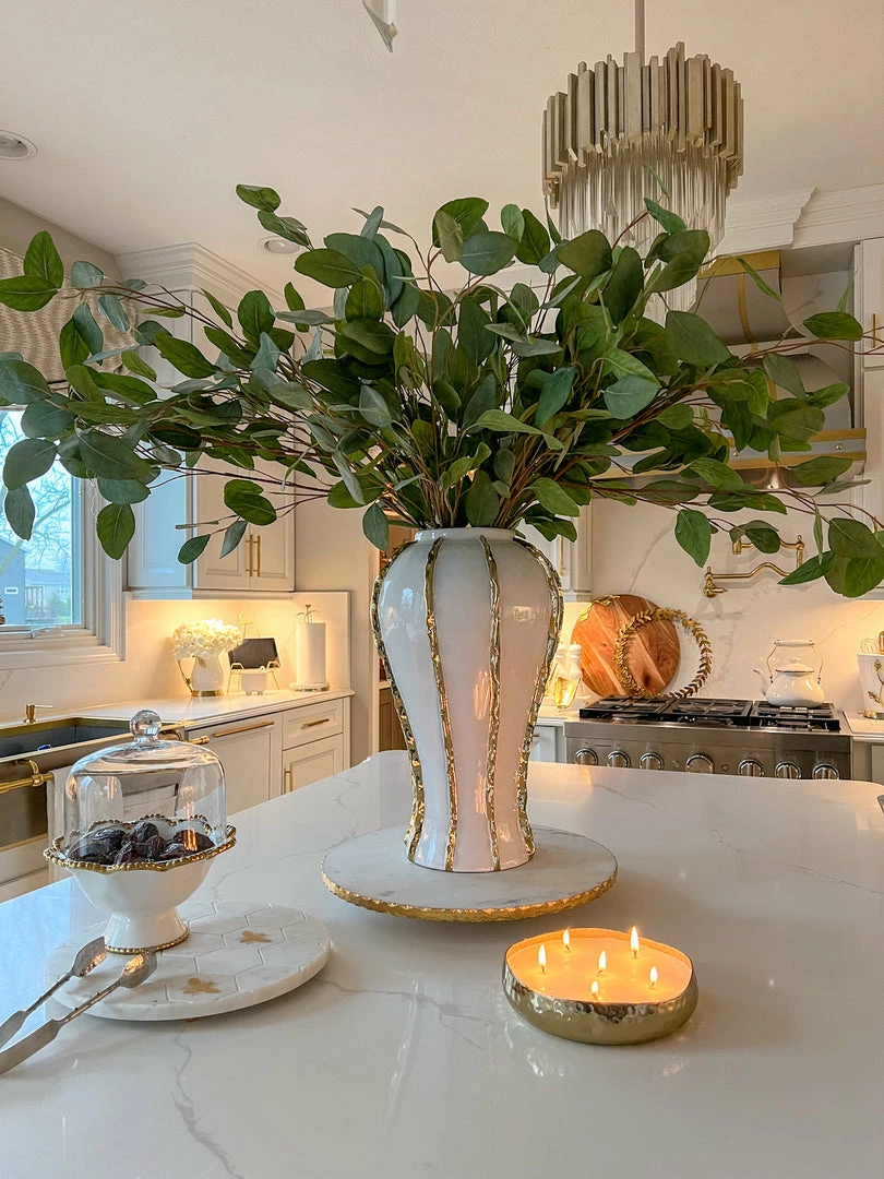 Inspire Me! Home Decor Round Marble Tray With Gold Edge And Metal Details
