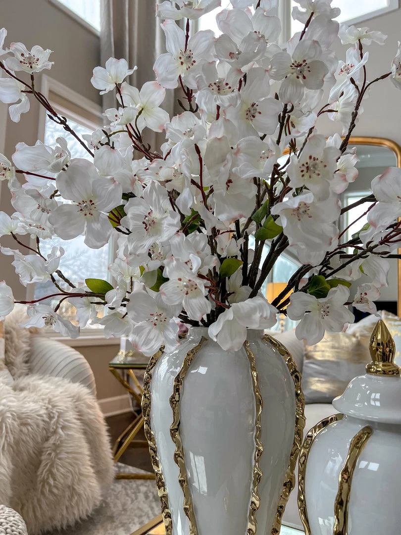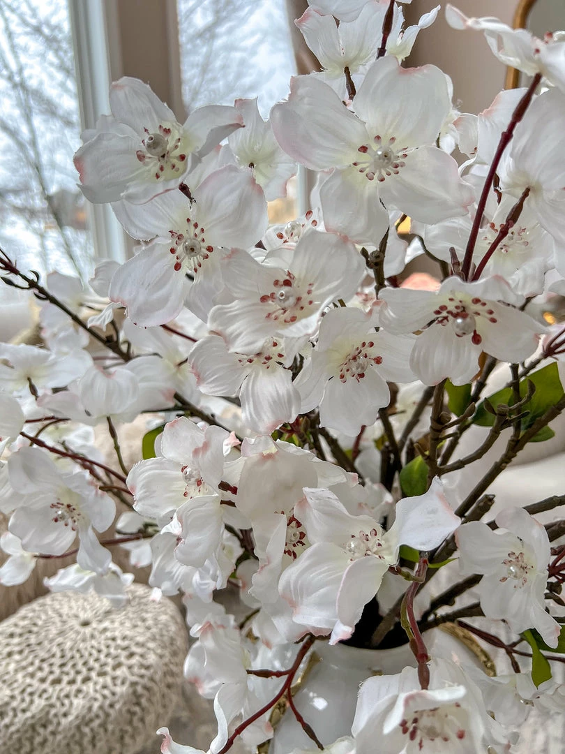 Description: This tall stem is so elegant, it features pearls in the center of each flower. We love the color and how it will tie into any decor.