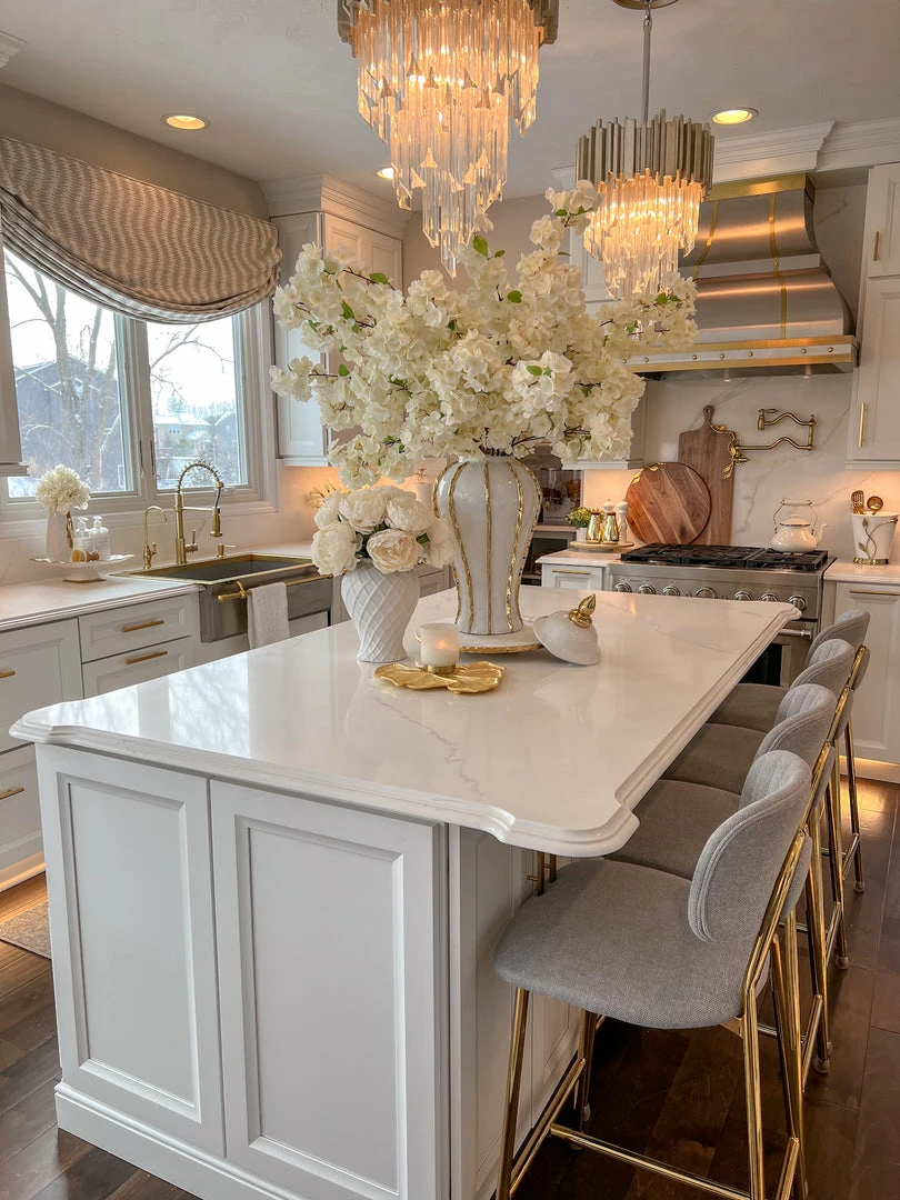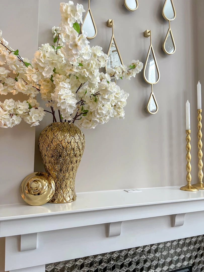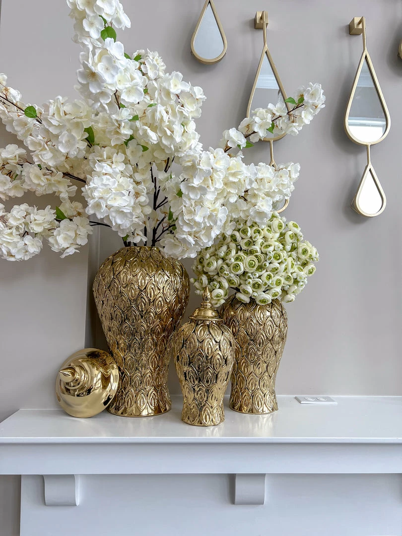 Inspire Me! Home Decor White Ceramic Vase With Stunning Gold Floral Detailed Center