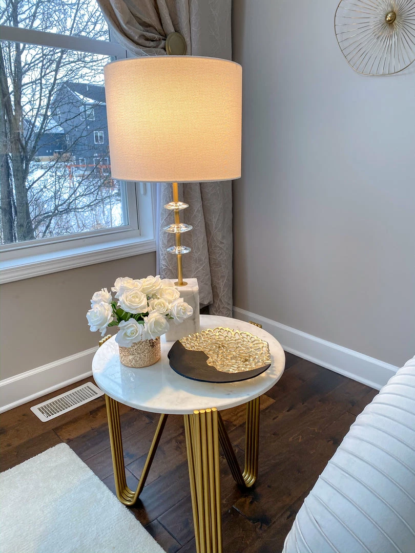 Inspire Me! Home Decor Round Marble Tray With Gold Edge And Metal Details