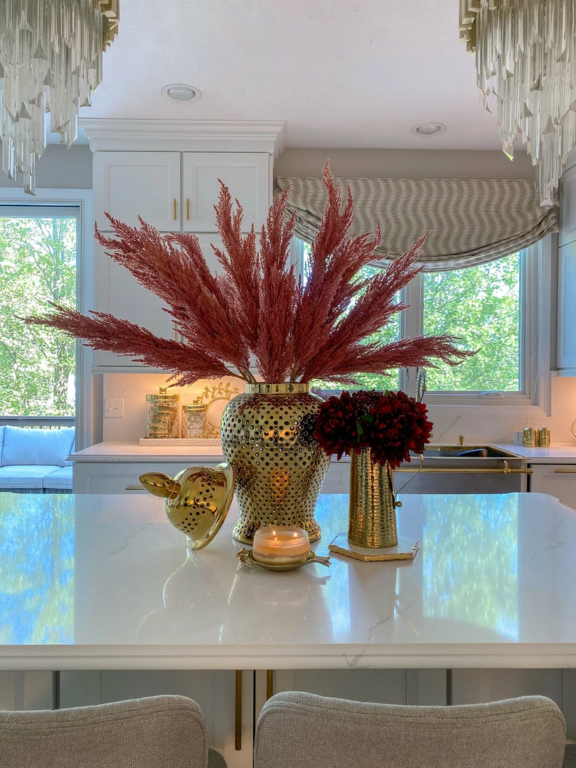 Inspire Me! Home Decor White Ceramic Vase With Stunning Gold Floral Detailed Center