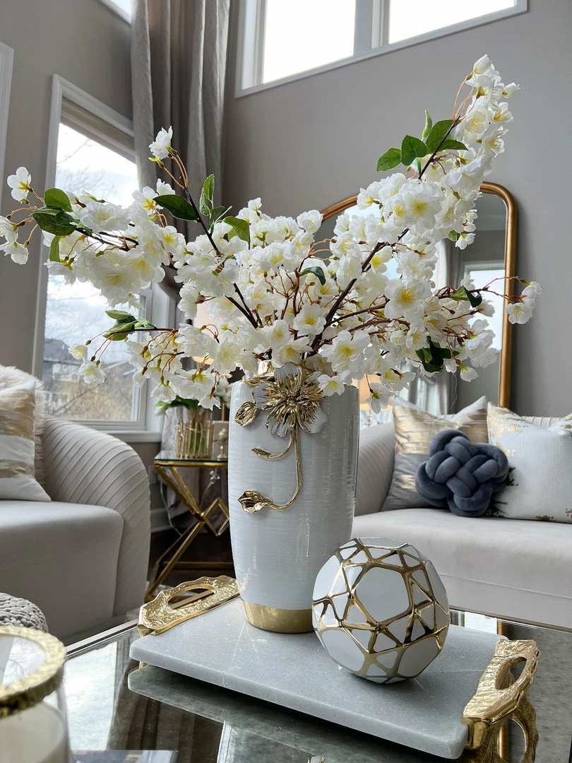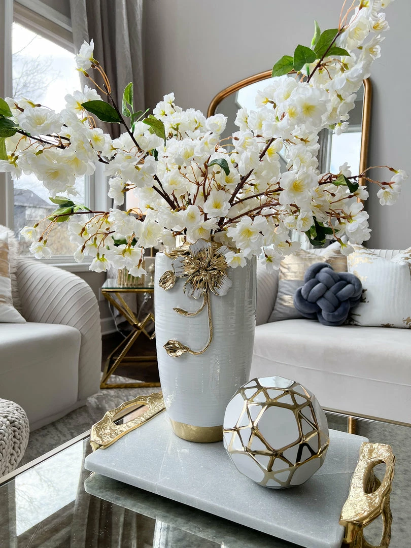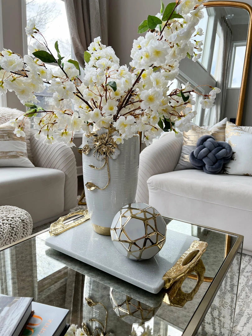 Inspire Me! Home Decor Rectangular Marble Tray With Cherry Blossom Details