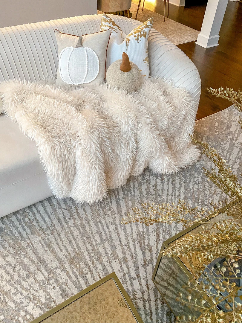 Description: This cozy pumpkin pillow is the perfect accent for fall! We love the white pom-pom details surrounding the pumpkin and brown trim accents the light-colored pillow perfect for a cozy vibe!