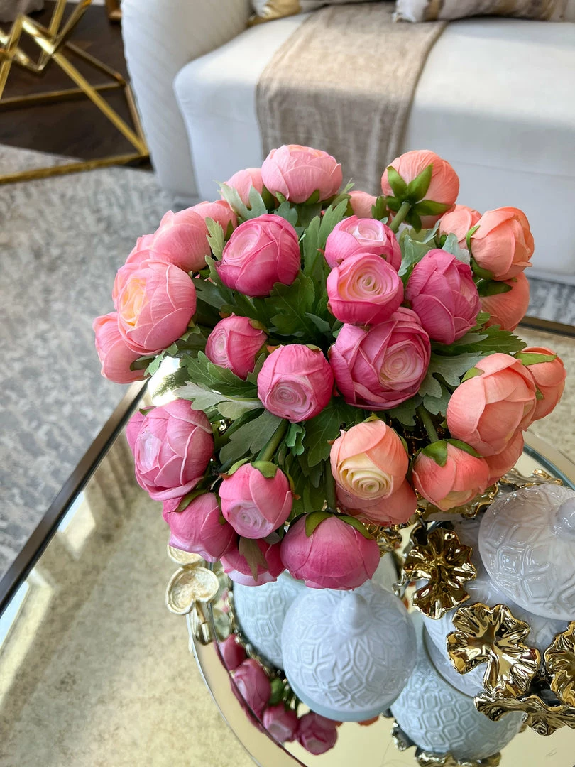 Description: These brightly colored real touch ranunculus bundles are perfect for spring!