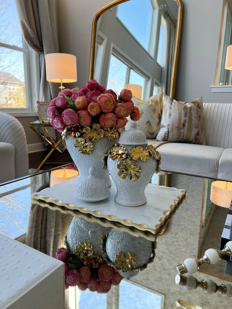 Inspire Me! Home Decor Large Rectangular Marble Tray With Cherry Blossom Details