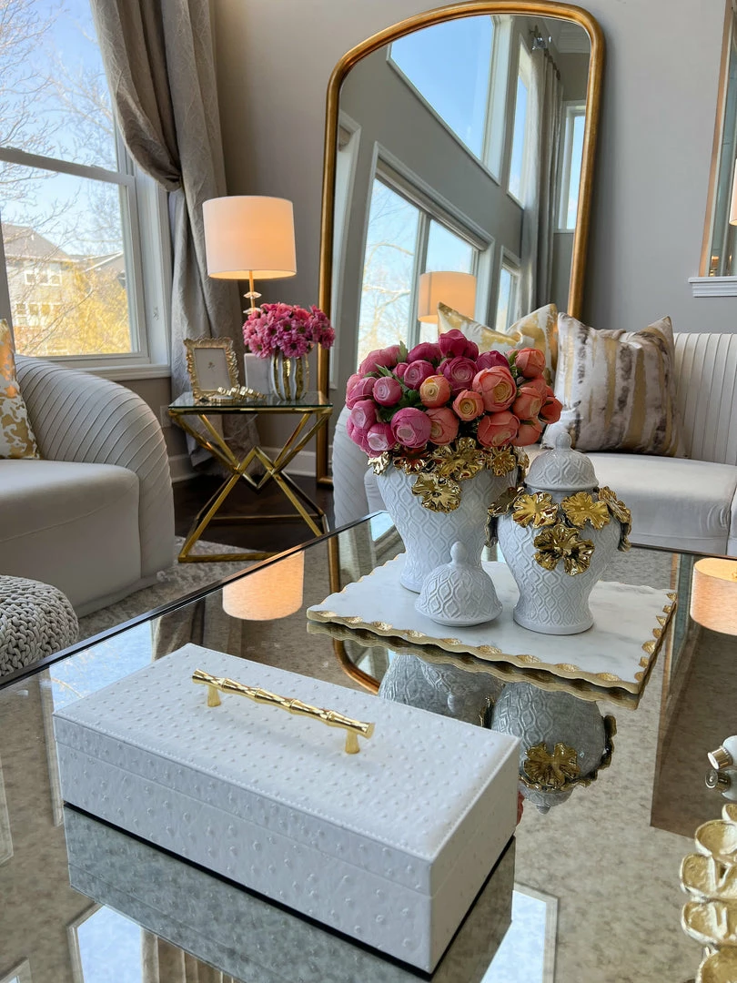 Inspire Me! Home Decor Rectangular Glass Tray With Cherry Blossom Details