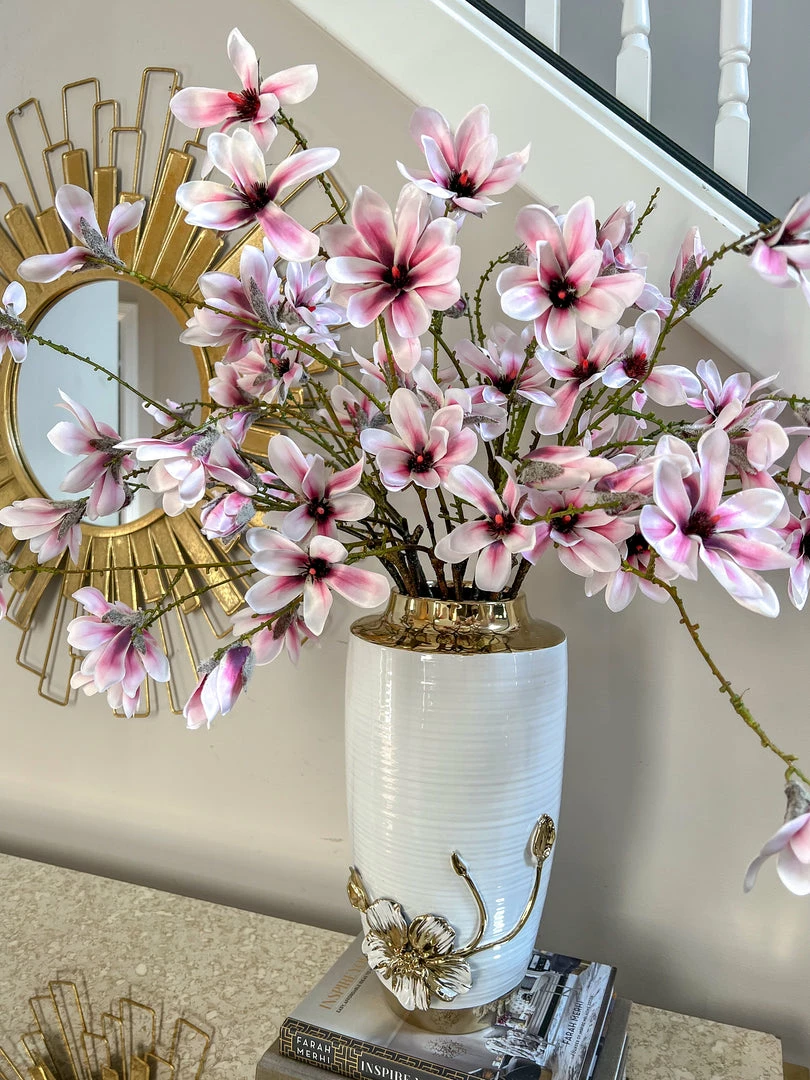 Description: The soft hues of this magnolia is perfect for every day and will work well with any decor style.