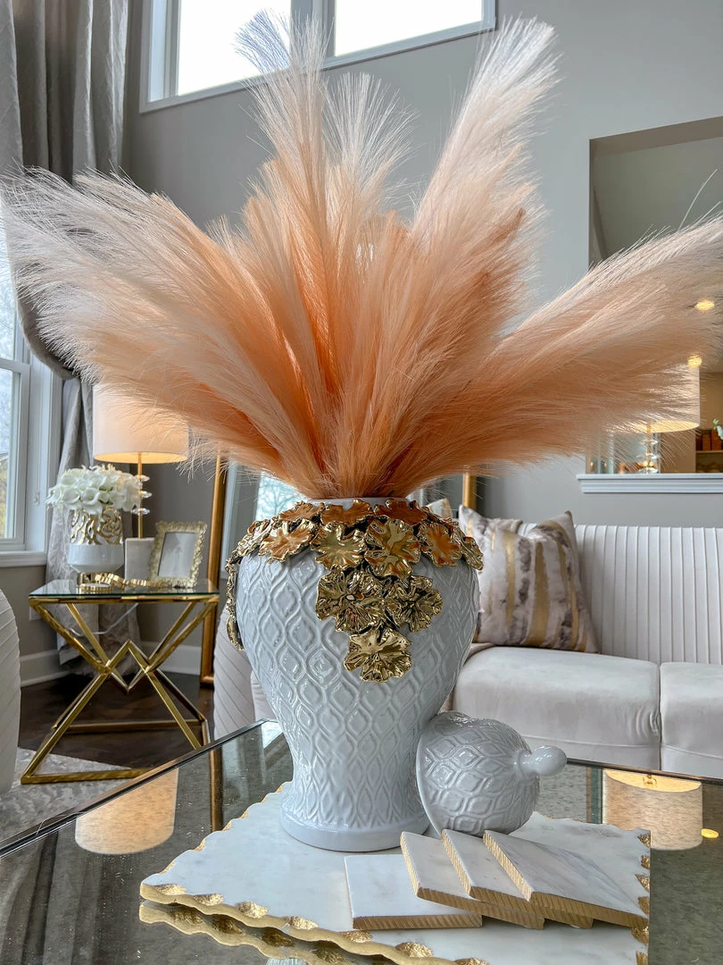 Description: This stunning feathered plume stem is perfect to add some drama to your favorite vases!