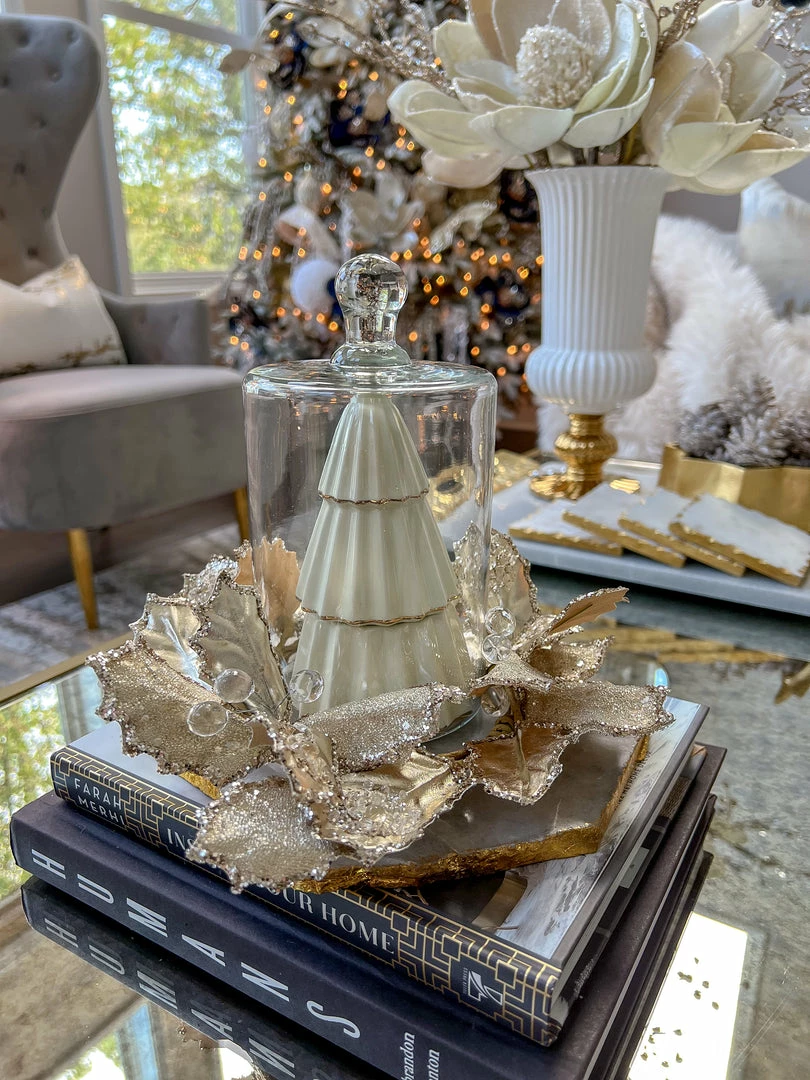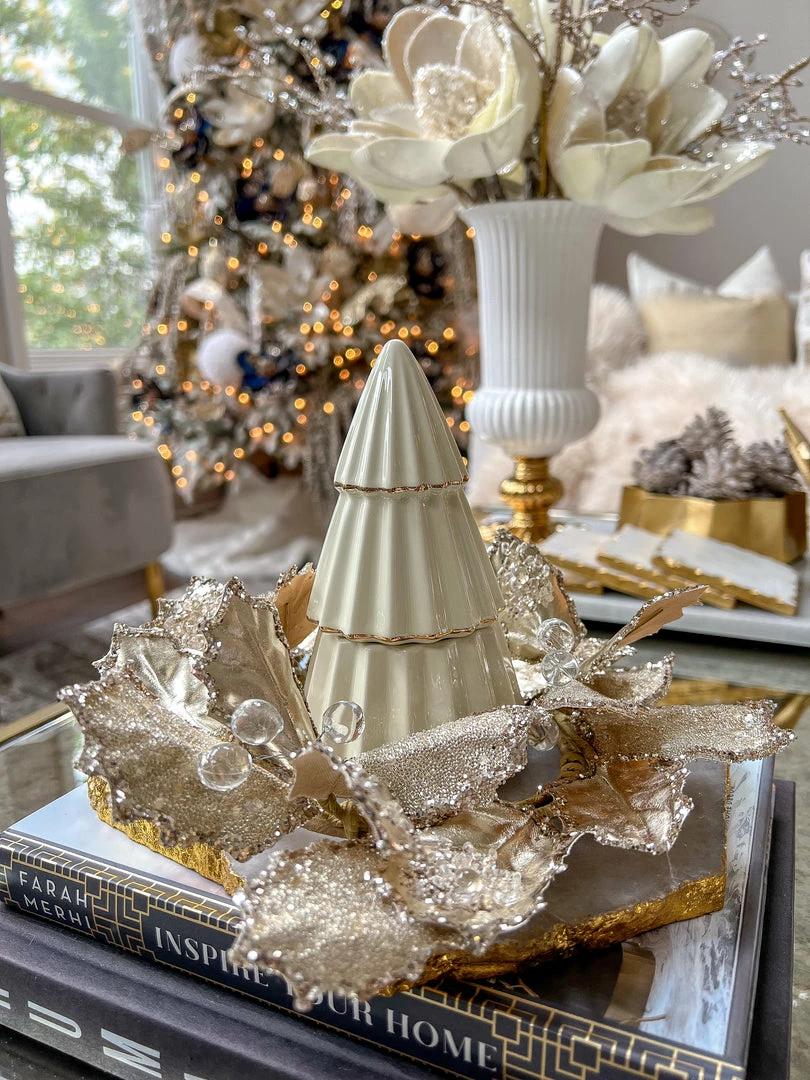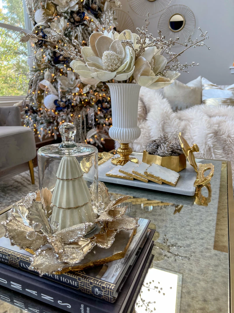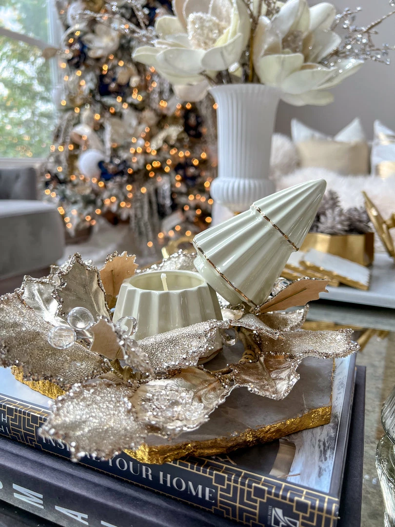 Inspire Me! Home Decor Round Marble Tray With Gold Edge And Metal Details