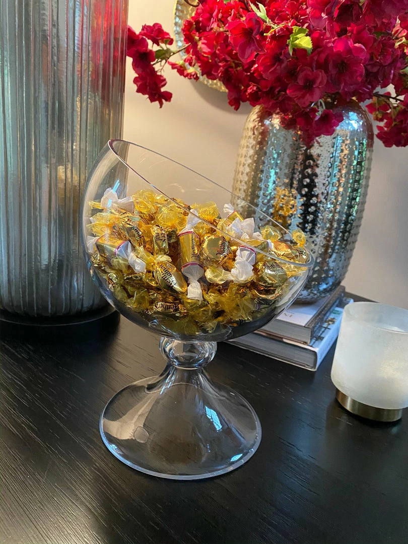 This unique glass globe jar is a very multi-purpose piece. You can use it as a vase, a planter, a server, or just on its own! Place your favorite snacks in it, or display your bathroom essentials in style!Â
