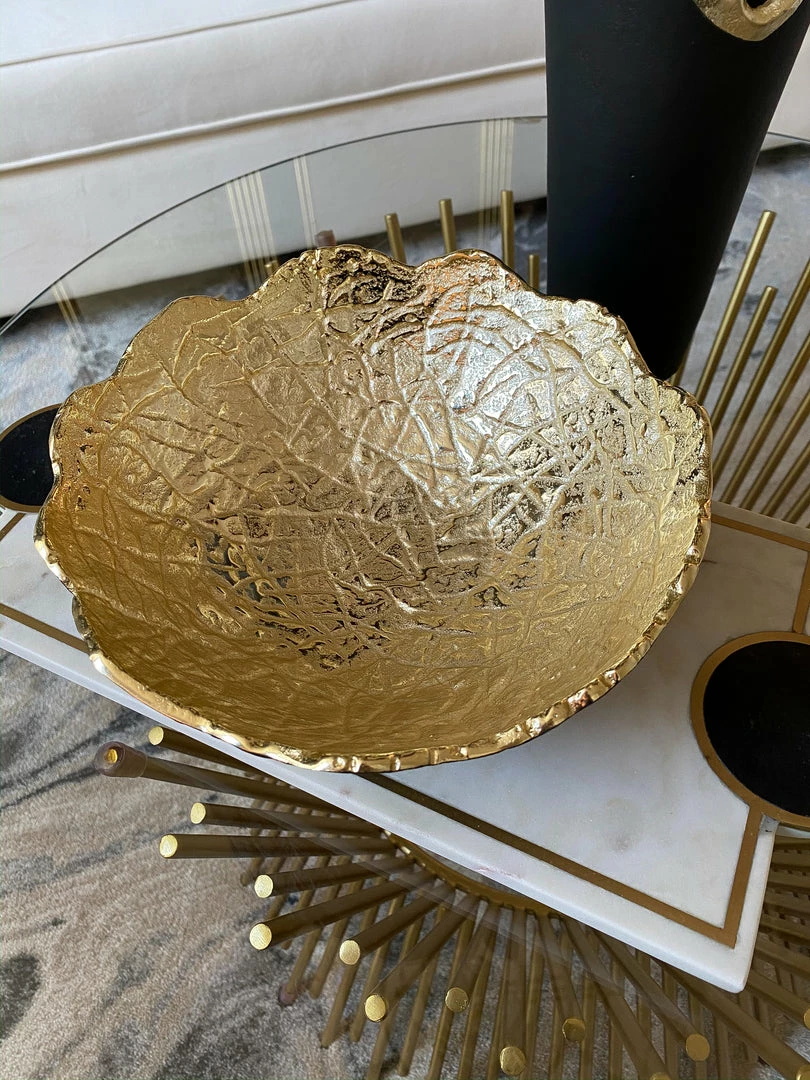 Description: We love the slight textured detail of this gold bowl! Perfect for displaying your favorite fillers or creating a subtle statement all on its own!