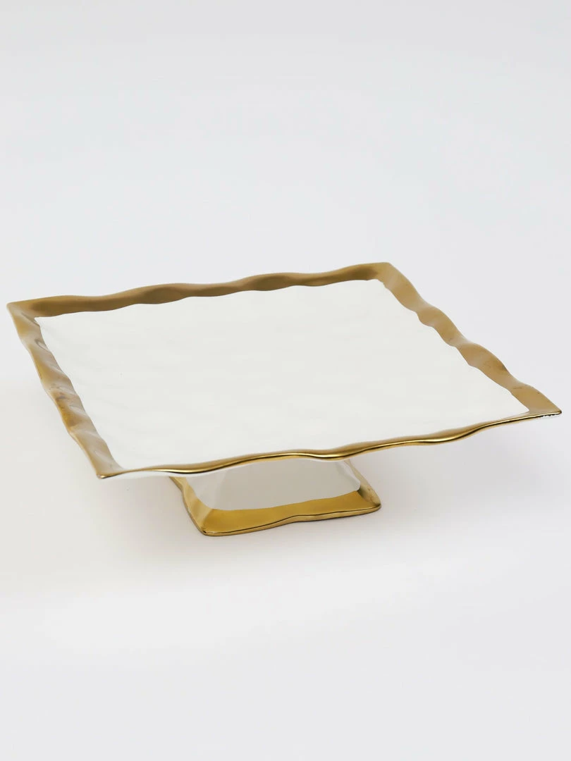 Description: We love the classic style of this ceramic cake stand with its beautiful gold trim details. This also makes a beautiful display for your soaps on your kitchen counter.
