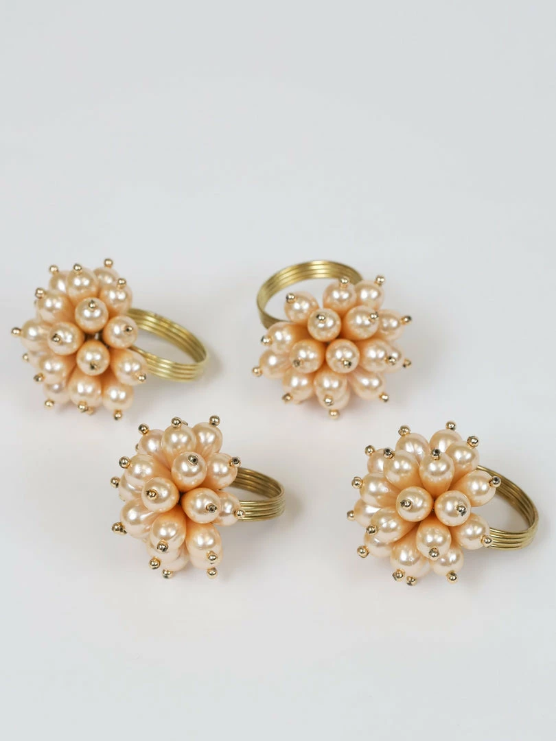 Description: These gold napkin rings feature beautiful pearl accents for an extra level of elegance!
