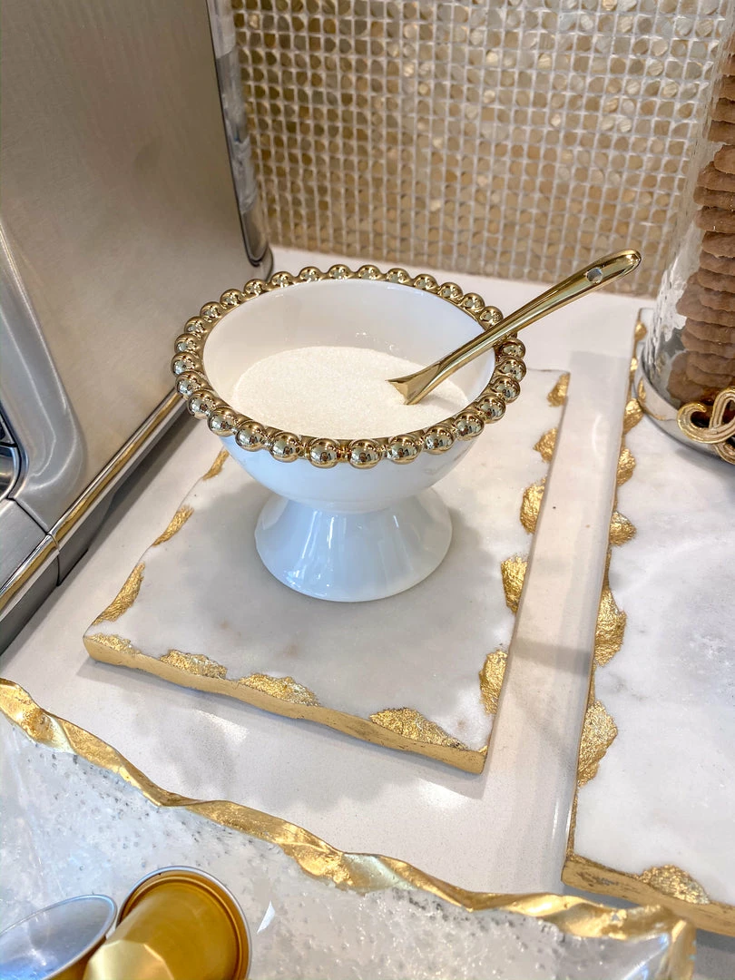 Inspire Me! Home Decor Round Marble Tray With Gold Edge And Metal Details