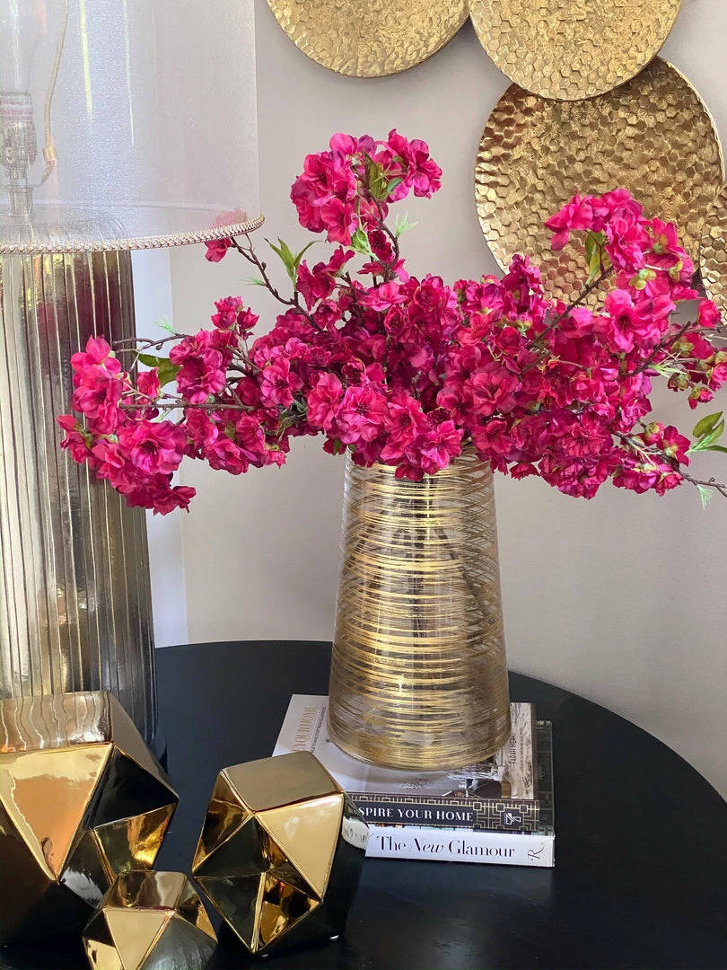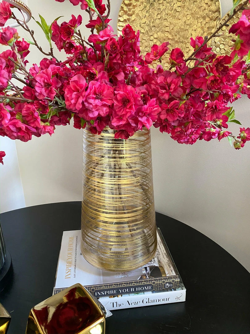 This gold vase adds texture and interest to your vignette while displaying your beautiful real or faux florals.