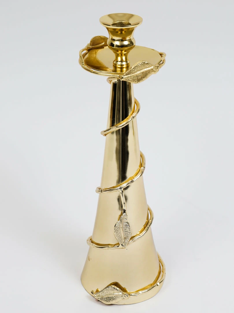 Description: These gold detailed candle holders are a beautiful addition to your coffee table or credenza! Style them anywhere in your home with some taper candles and they will bring a glam look to the room!