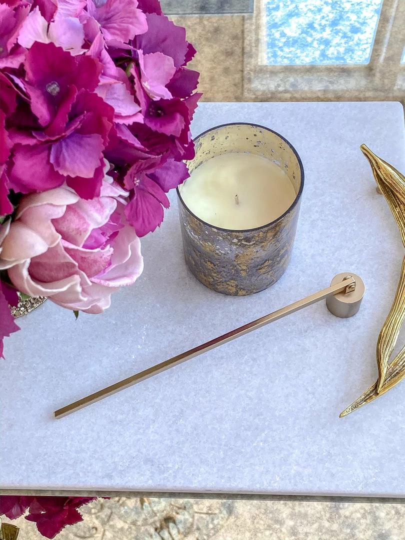 Description: A simple gold piece that is functional and stylish- Perfect to keep next to your favorite candle to add that unique touch of glam.