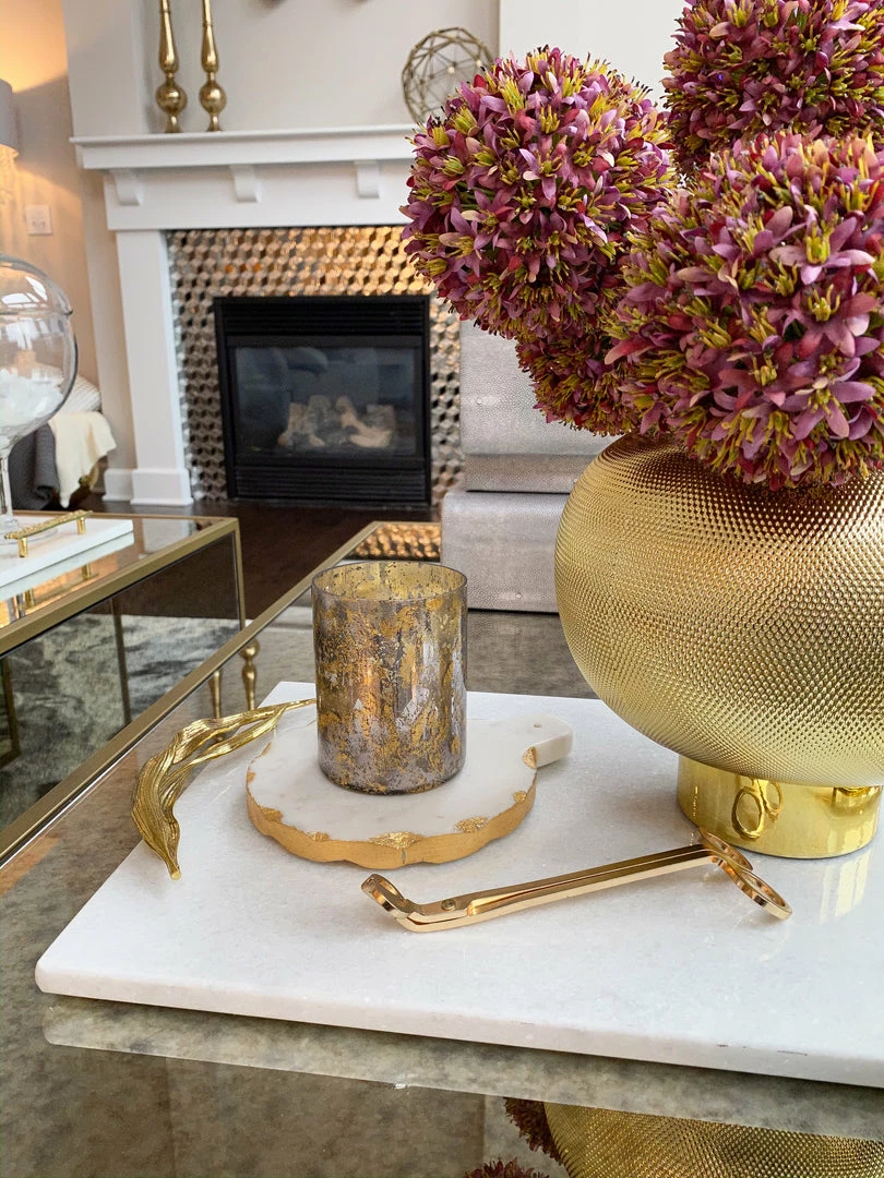 Inspire Me! Home Decor Round Marble Tray With Gold Edge And Metal Details