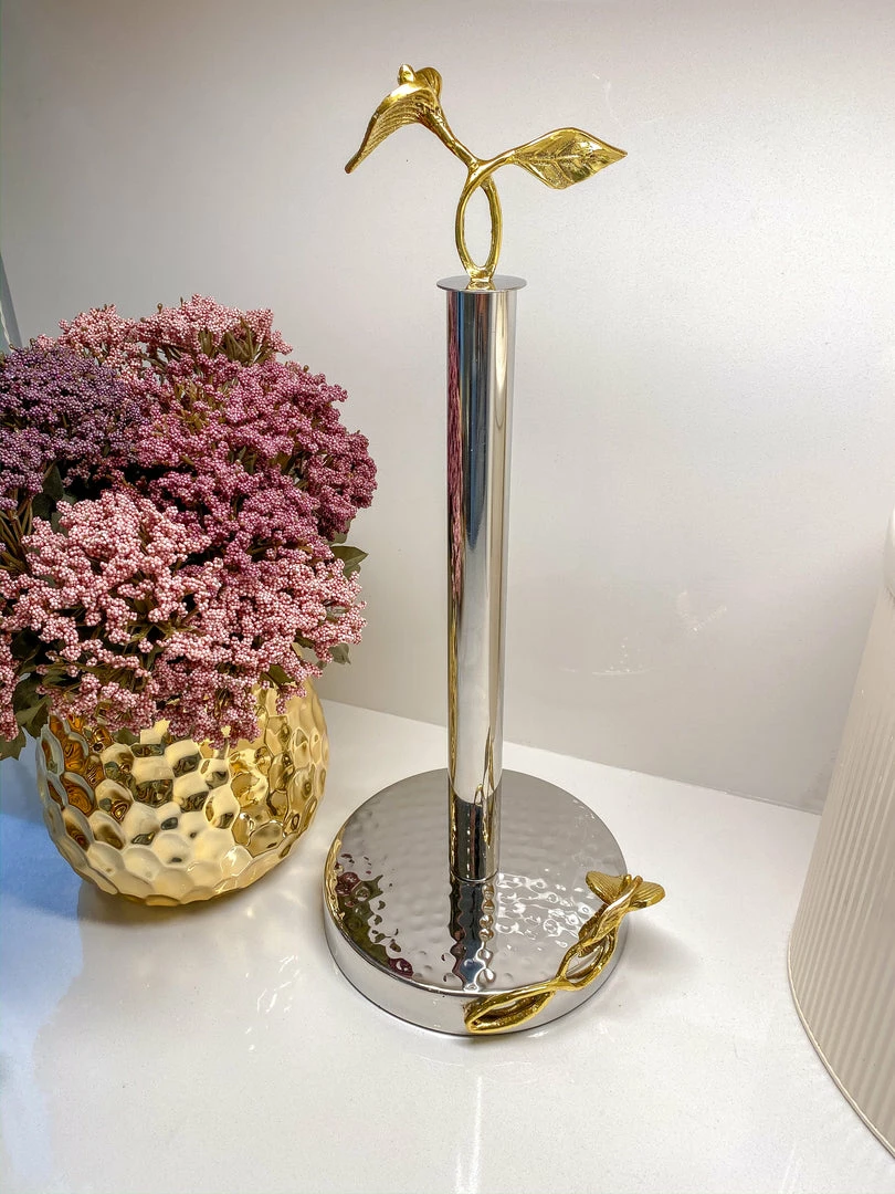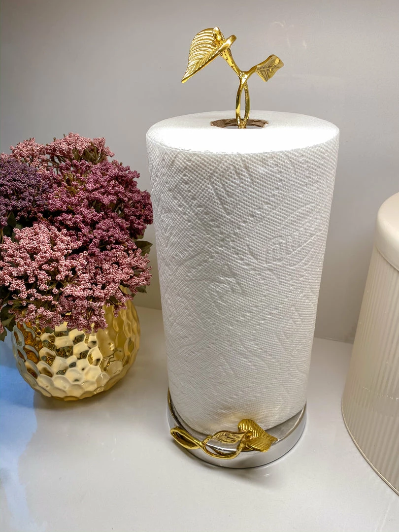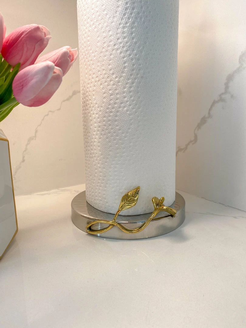 This stunning metal paper towel holder will take your kitchen counter to the next level. With stunning gold detailing, this piece is a show stopper.