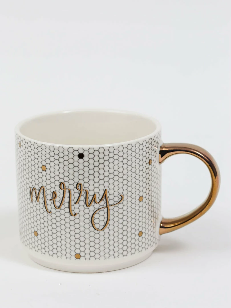 Description: This white mug with speaks of gold dots and a gold handle is beautiful! A classic and timeless mug for every occasion.