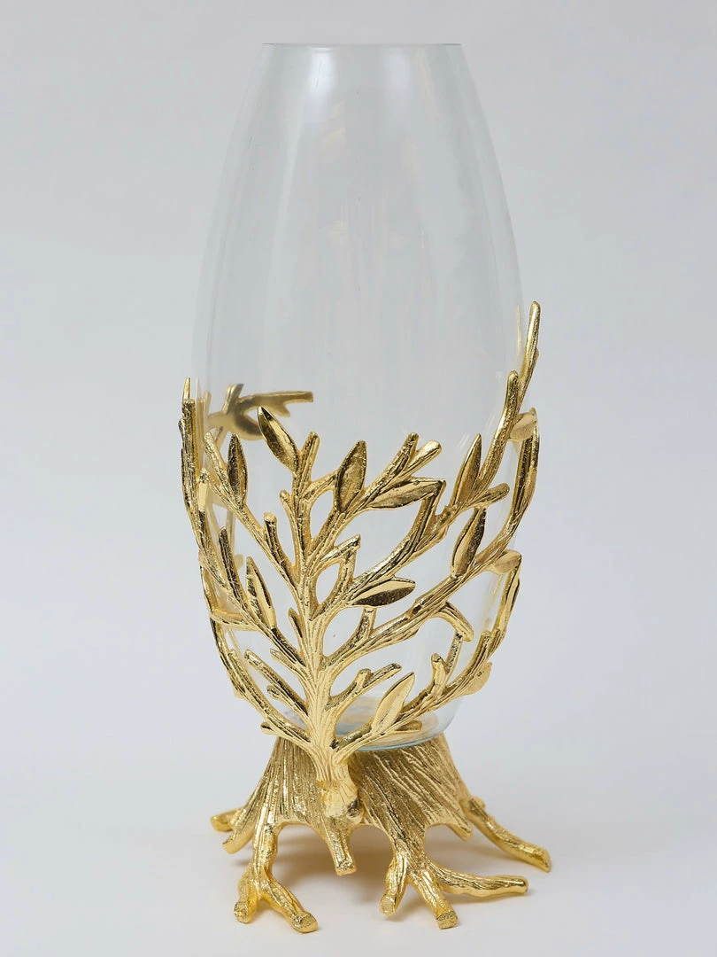 Description: This elegant piece features a gold tree branch metal base with a glass vase insert.