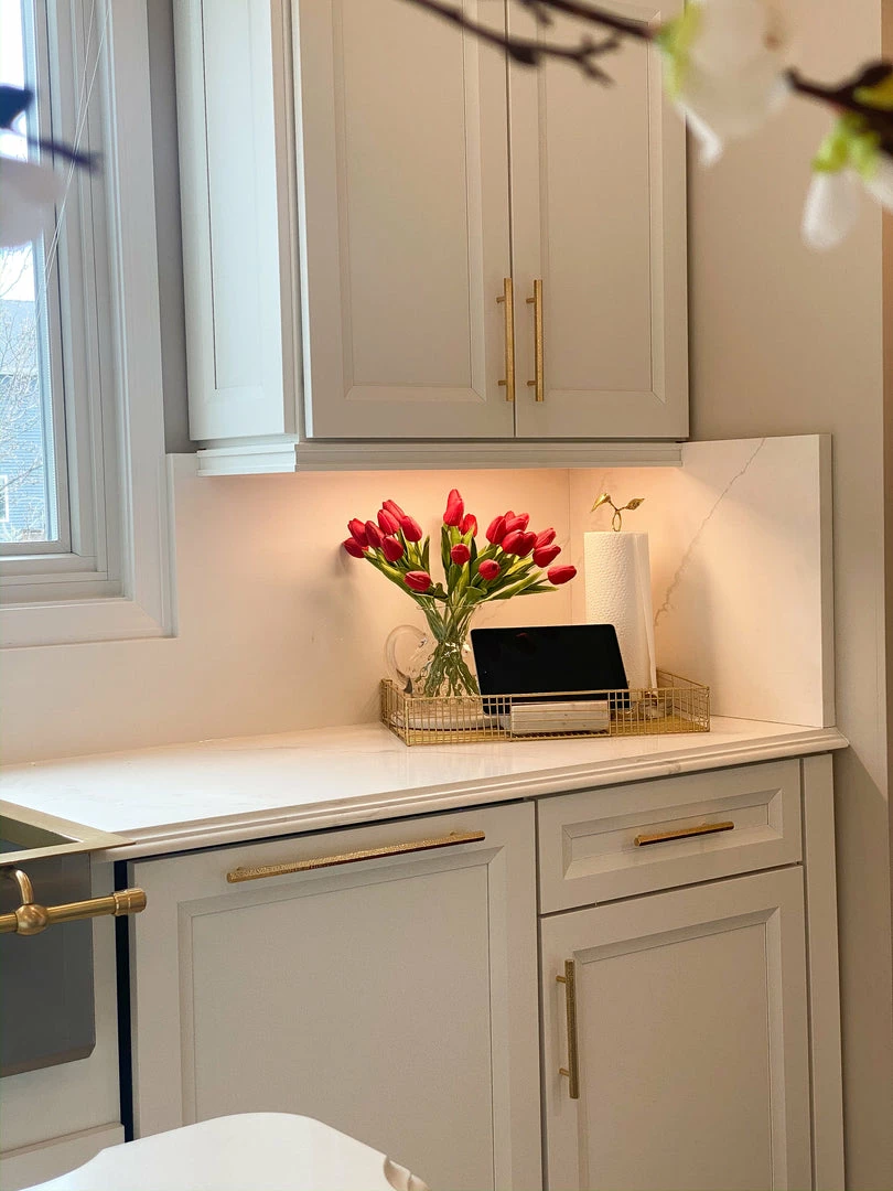 Description: This set of two metal basket trays are perfect for your linen closet, shelves, or restroom organization. We love that it has a glam look while still being functional!