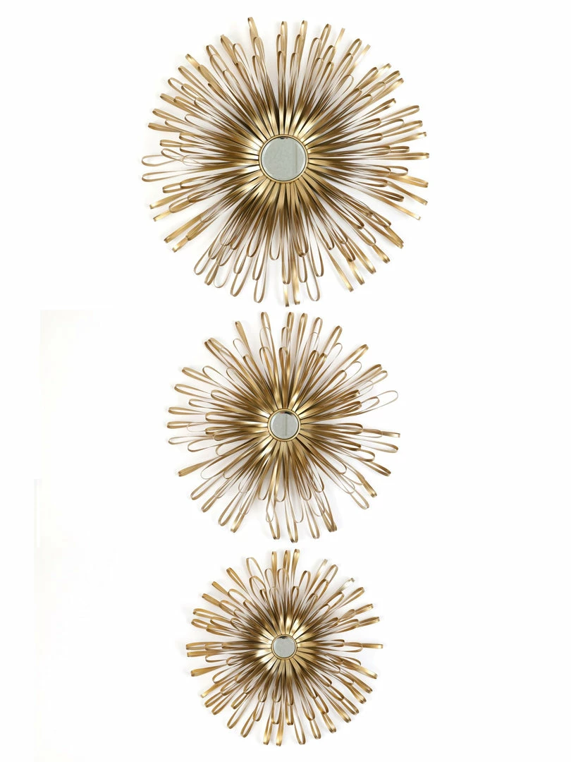 Description: This elegant 3 piece set will add flair with its bright sunburst design framed mirrors which will glisten light into any space.