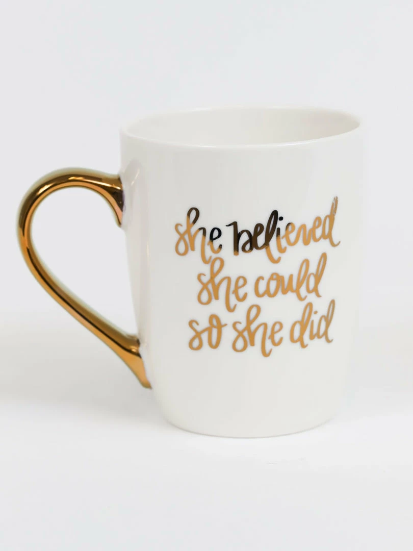 Description: Need a little extra inspiration in the morning? Pour your favorite hot beverage and think to yourself “she believed she could, so she did” and have a great start to your day!