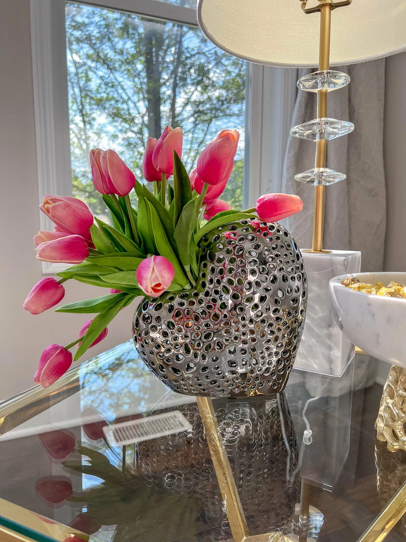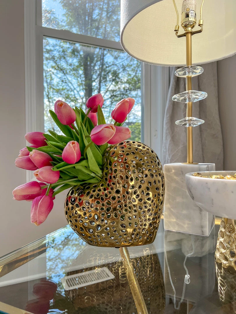 Inspire Me! Home Decor White Ceramic Vase With Stunning Gold Floral Detailed Center