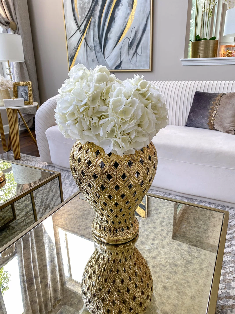 Inspire Me! Home Decor White Ceramic Vase With Stunning Gold Floral Detailed Center