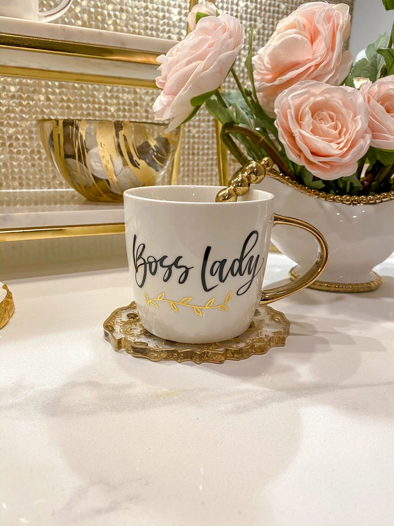 Description: For all the hard working ladies out there, you are the Boss Lady! The gold handle adds an extra touch of elegance that we love!