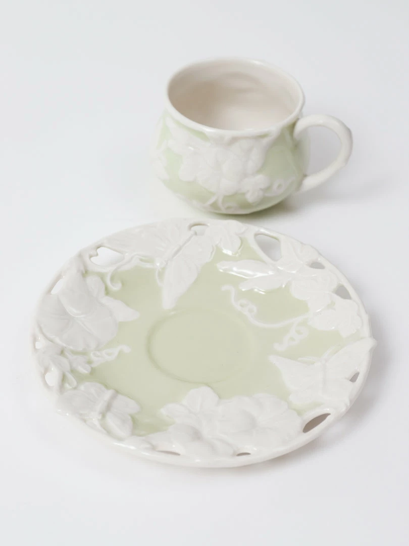 Description: This is a beautiful butterfly cup and saucer set! The set includes 2 cups and 2 saucers.