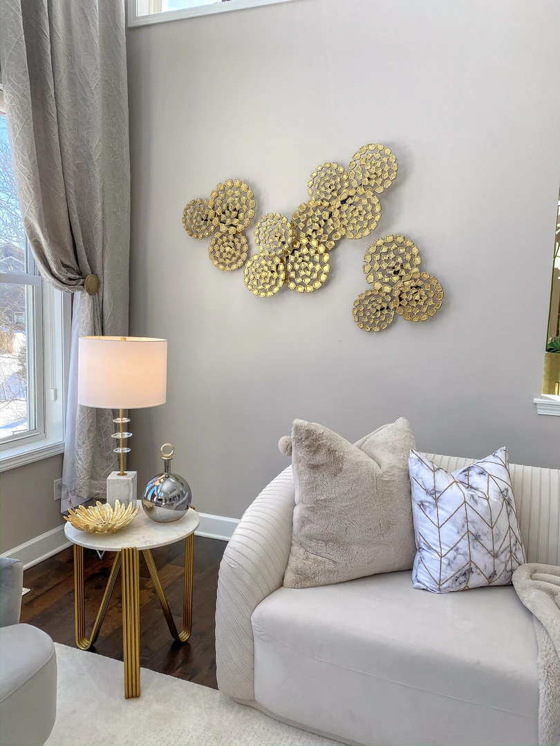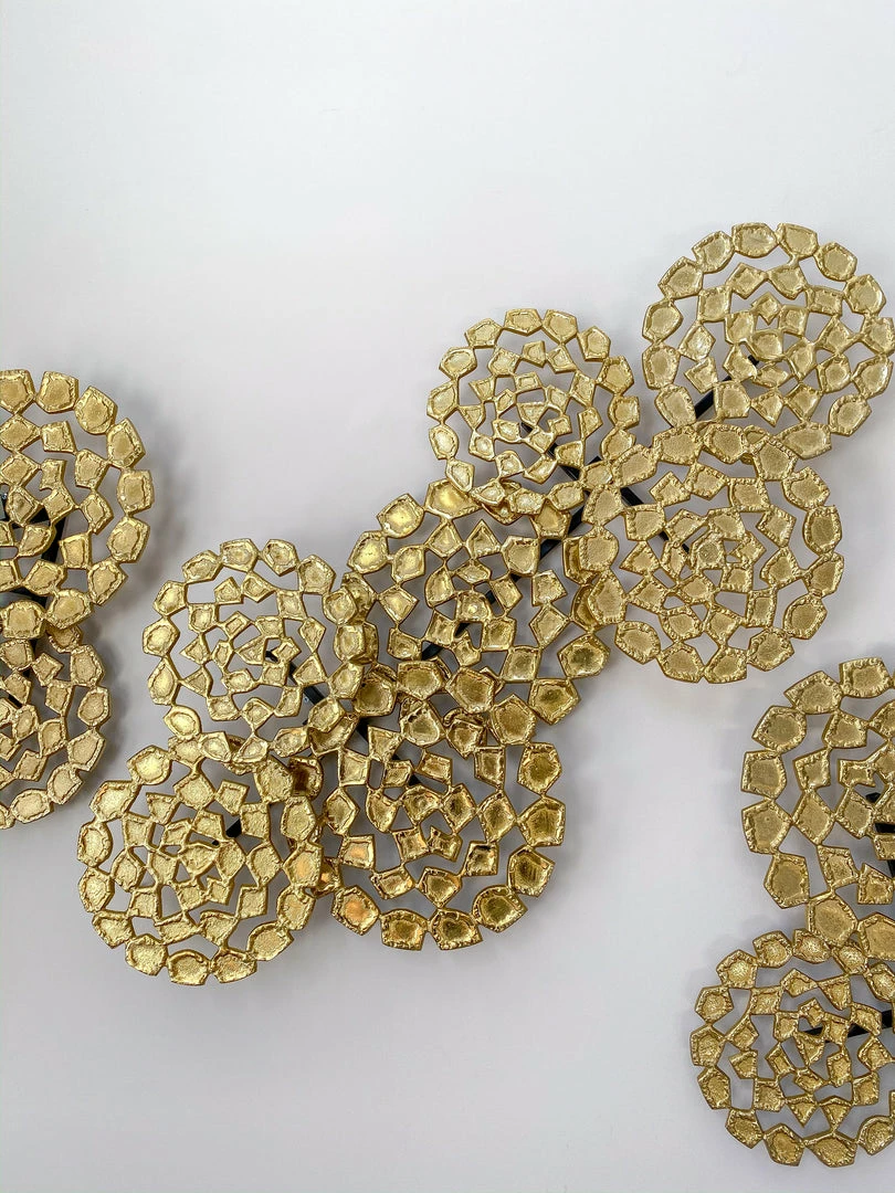 Description: Enjoy a sense of stunning texture and pattern with this beautiful wall art! This stunning gold piece features brilliant textures and patterns on each detailed piece.