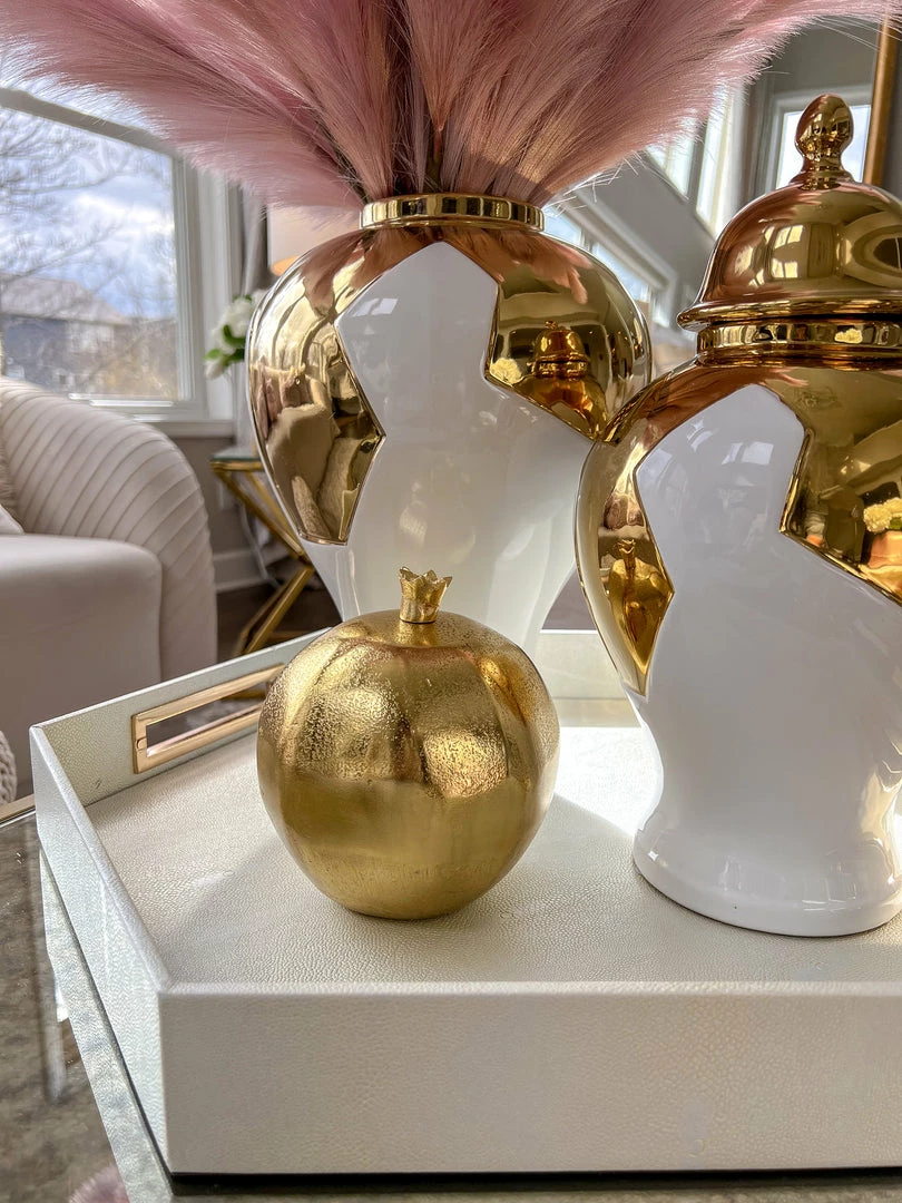 Description: This large gold pomegranate is the perfect decor for any room! Style it in your kitchen or wherever you need a little glam!