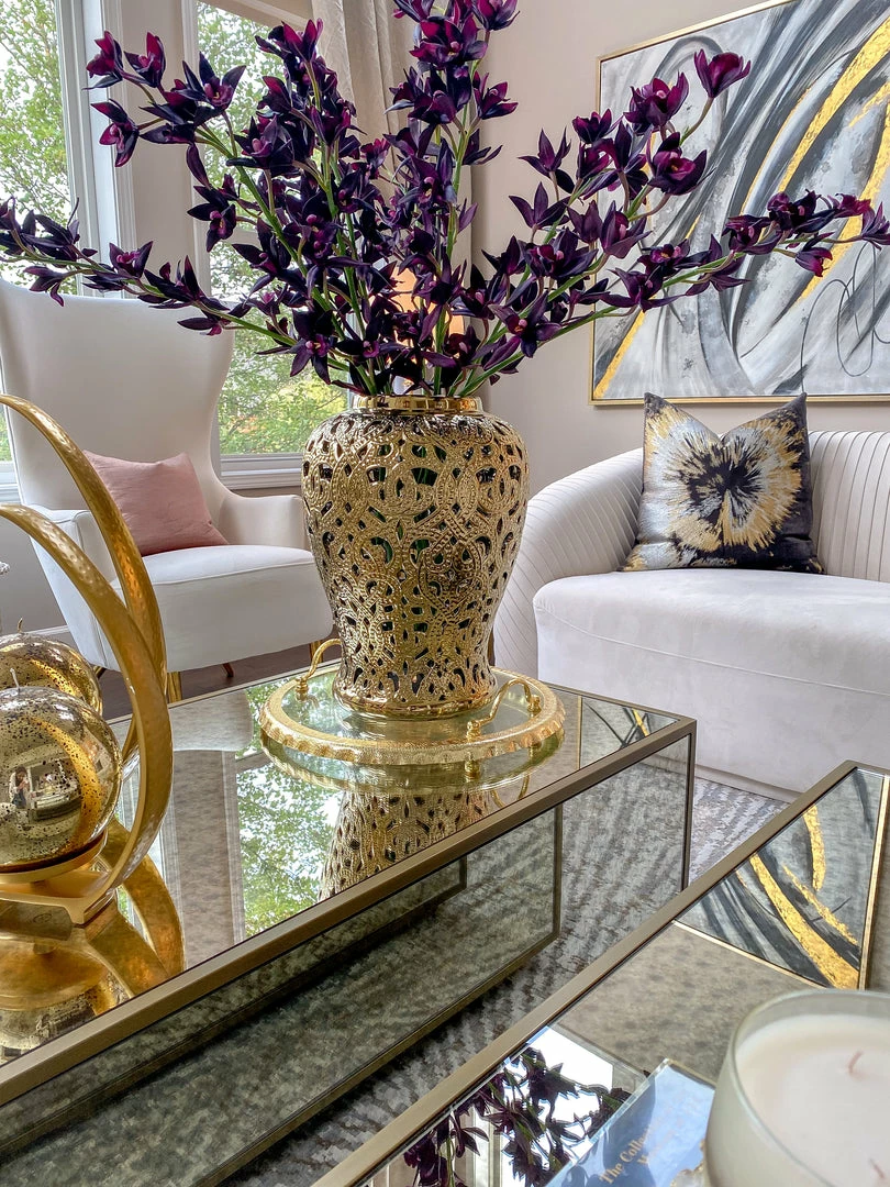 Inspire Me! Home Decor White Ceramic Vase With Stunning Gold Floral Detailed Center