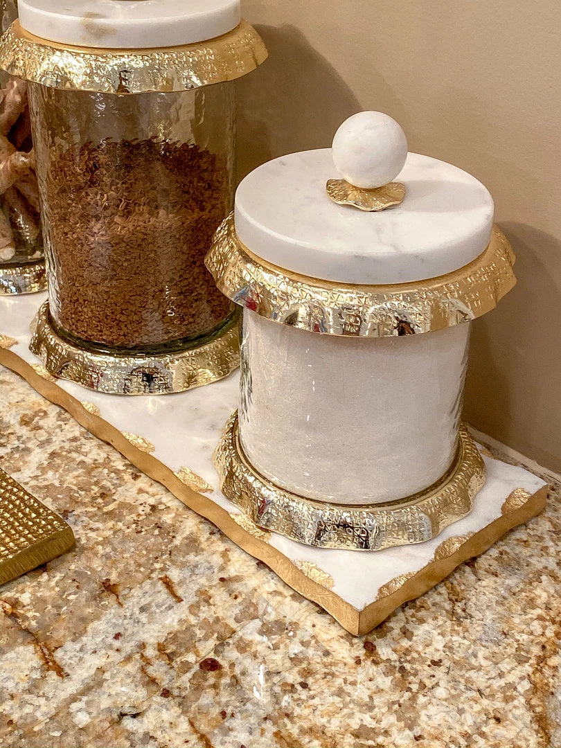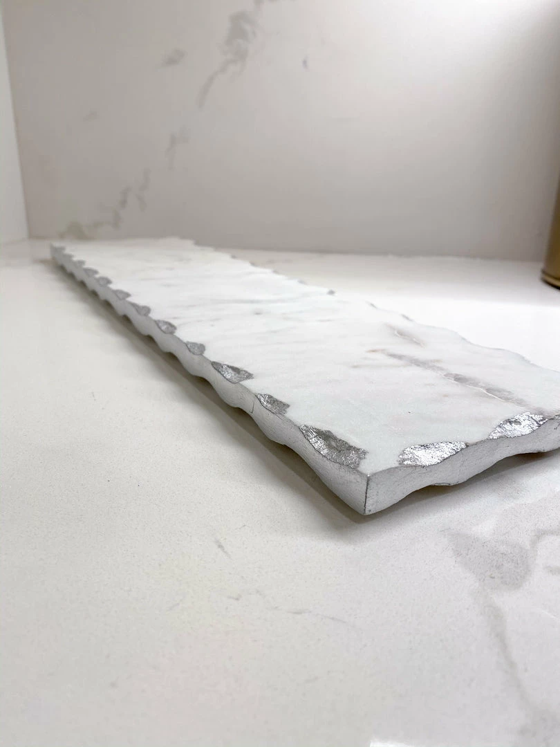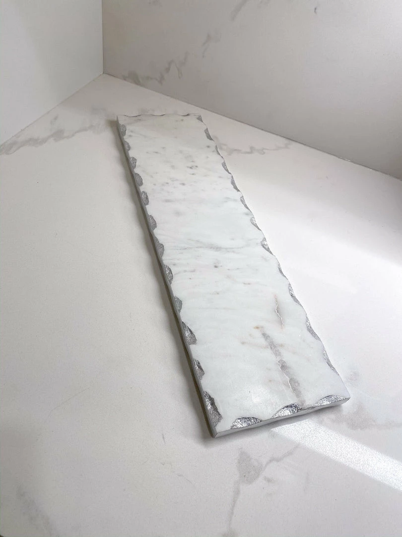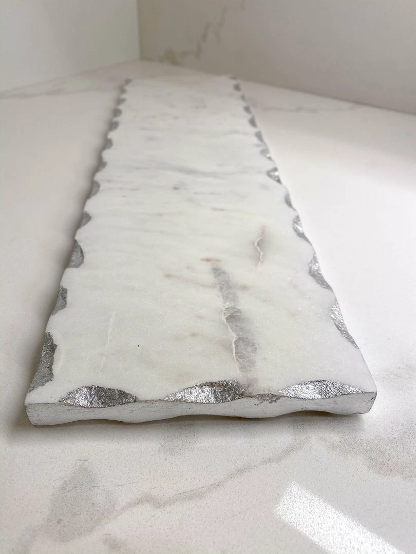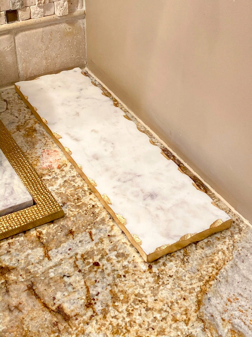 Description: Beautiful metallic-edged marble tray. A piece you’re sure to impress your guests with!
