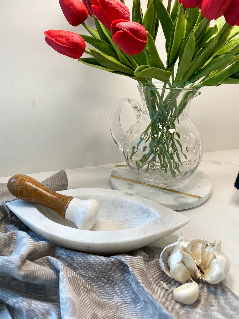 Description: These mortar and pestles are functional but are also a great decor peice! Style them on any shelf or counter in your kitchen for a sleek and fun look. Come in 3 different designs.