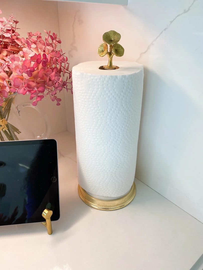 This stunning paper towel holder features marble and metal and will bring a little flare to your kitchen! We love the flowers on top to bring a natural touch to your home.