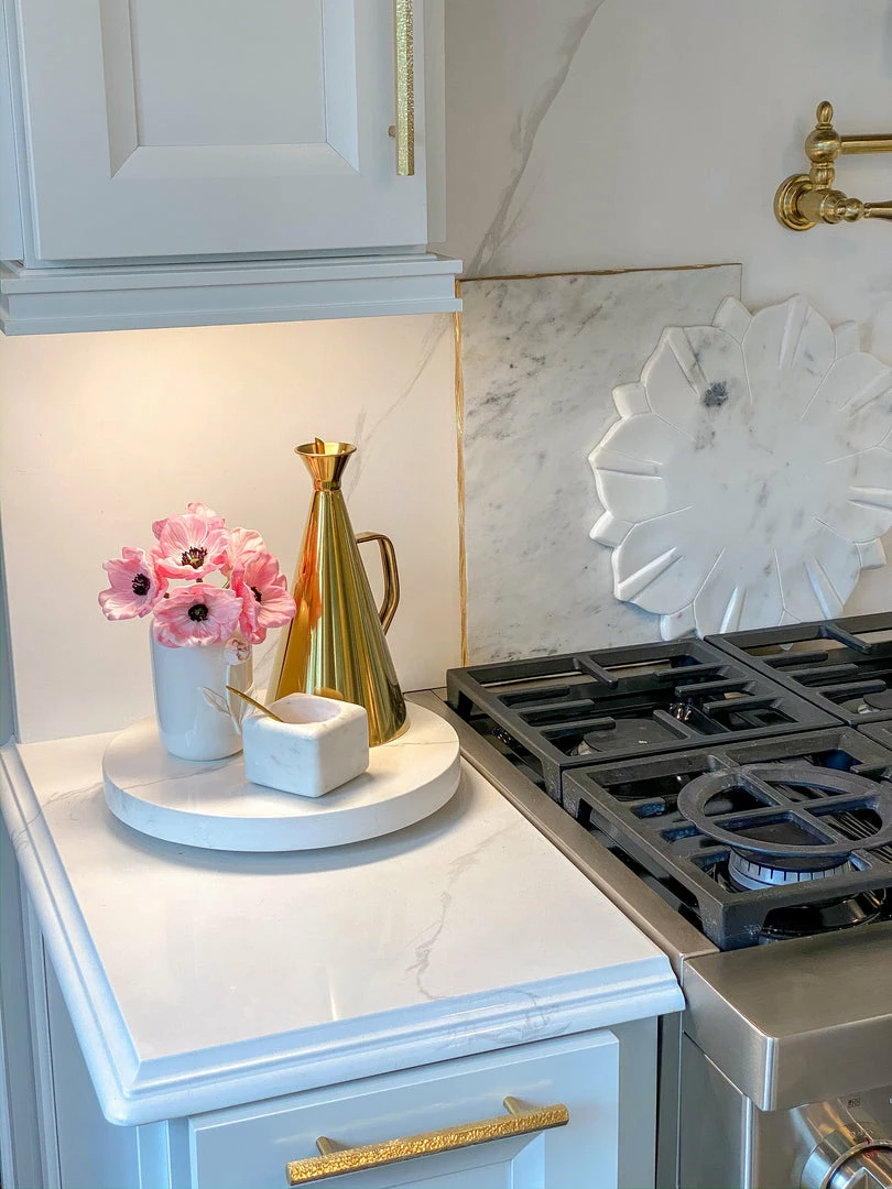 Inspire Me! Home Decor Round Marble Tray With Gold Edge And Metal Details