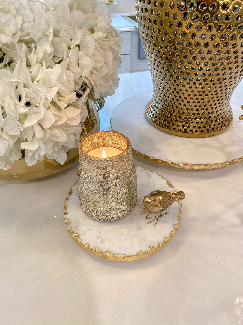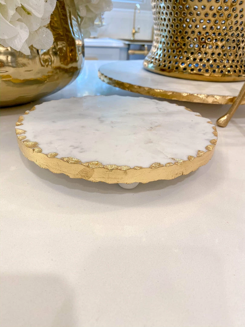 Inspire Me! Home Decor Round Marble Tray With Gold Edge And Metal Details