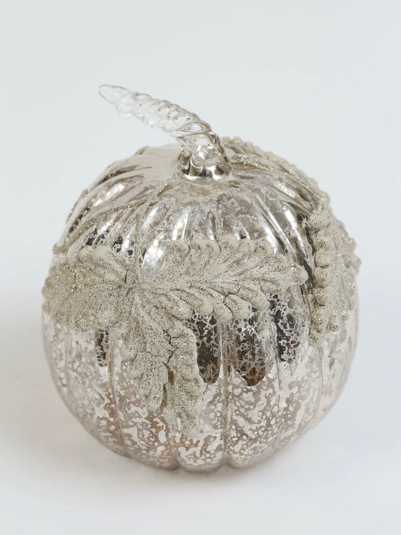 Description: This mercury glass pumpkin features details to make your fall decor glamourous!