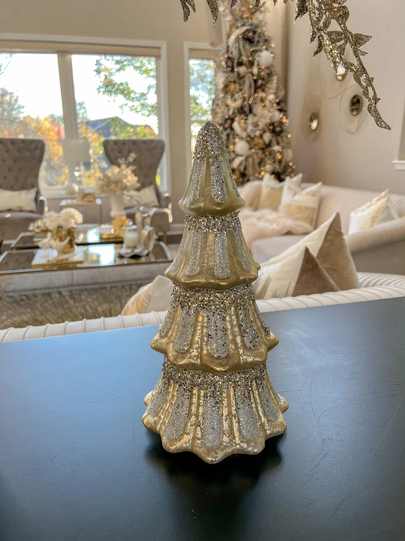 Description: These mercury glass trees with have a beautiful glitter finish and are a beautiful way to decorate for the holiday season.