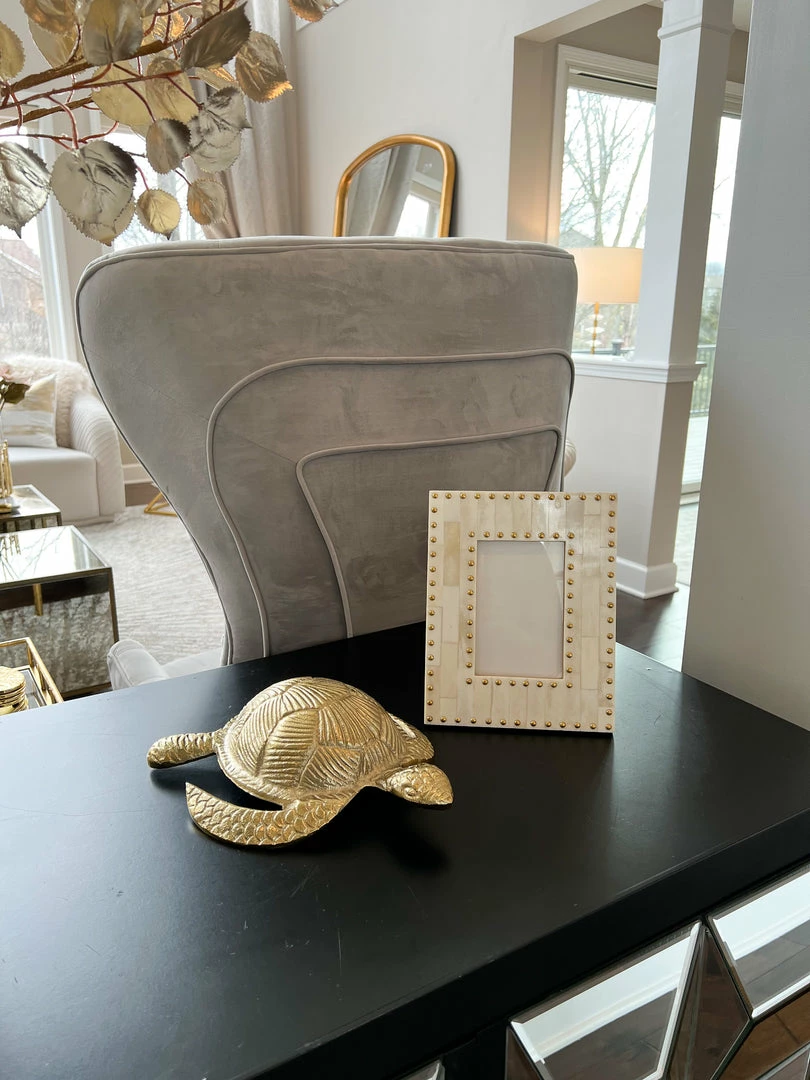Description: The tortoise represents wisdom, endurance, and long life and this golden metal turtle is so dang cute!