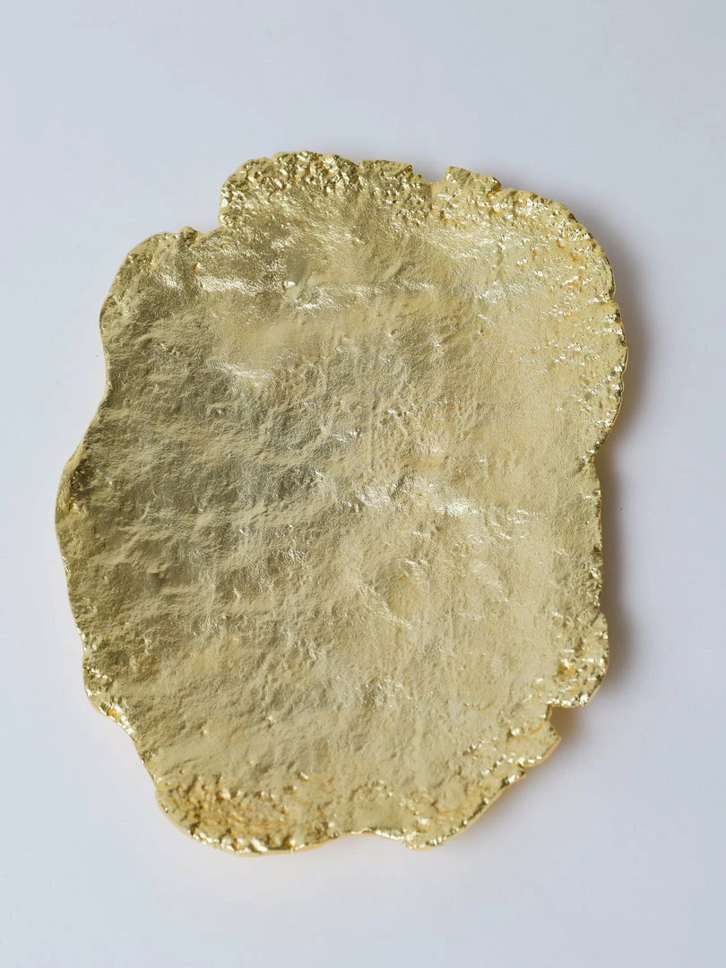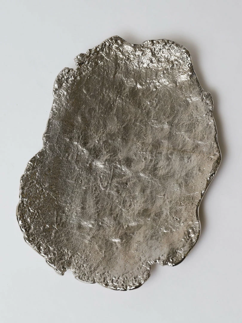 Description: Style your favorite vase, candles or decor on this gorgeous textured rough edge tray for a beautiful vignette. Available in gold and silver.