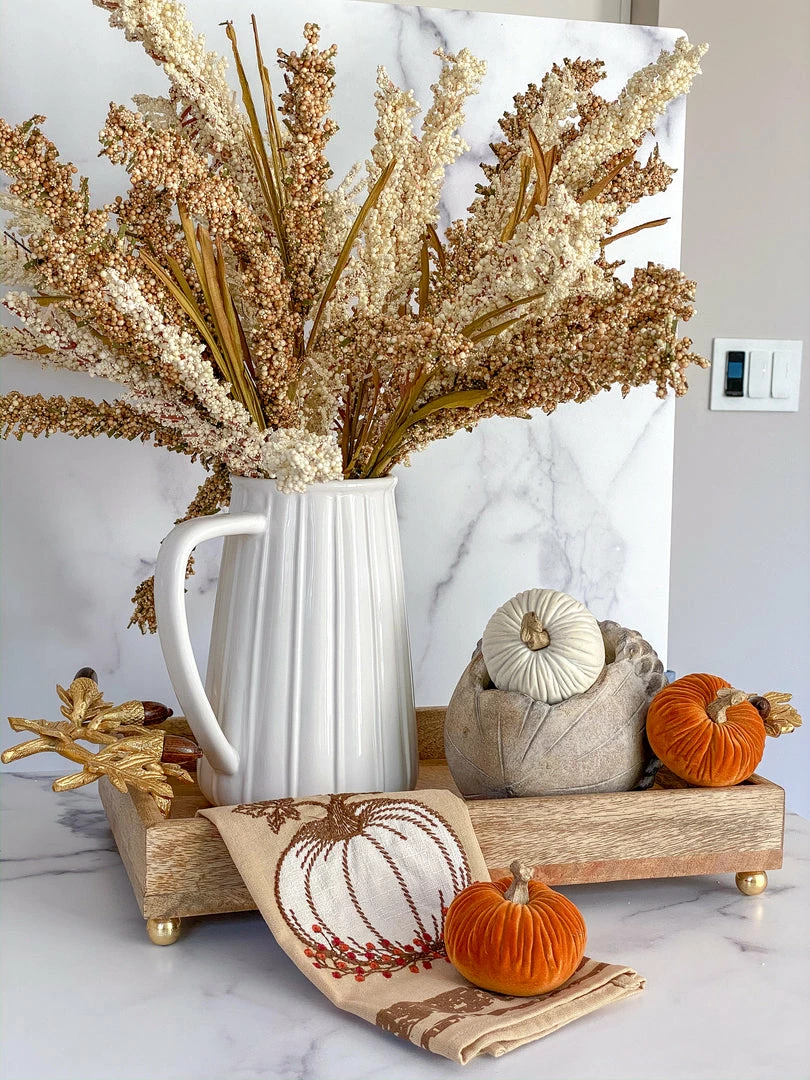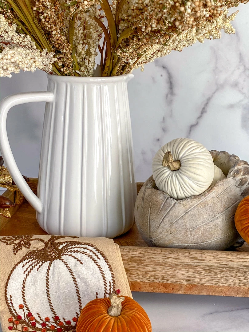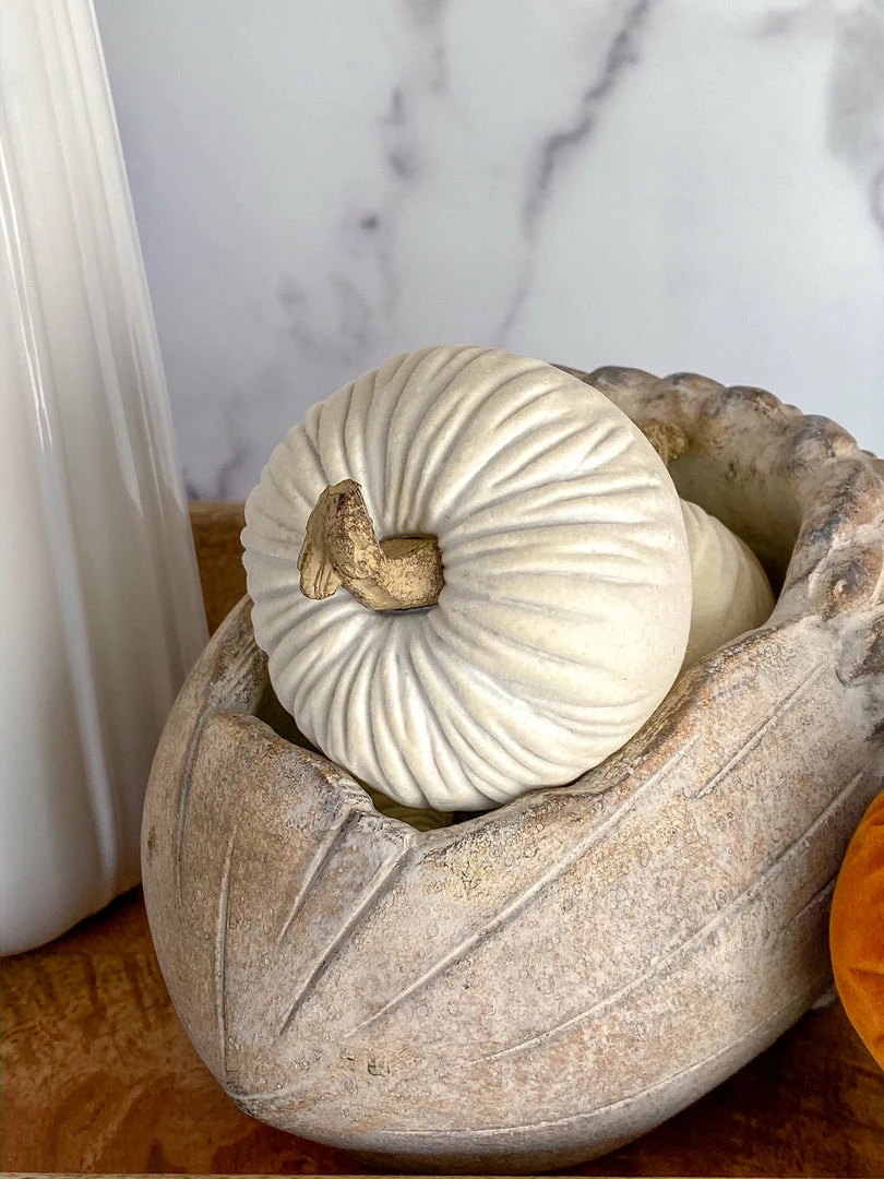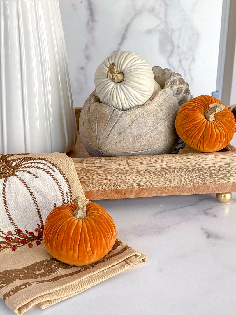 Description: These mini velvet pumpkins are the definition of fall! We love styling them in our bowls or on our trays! The white color styles nicely with any fall color trend.