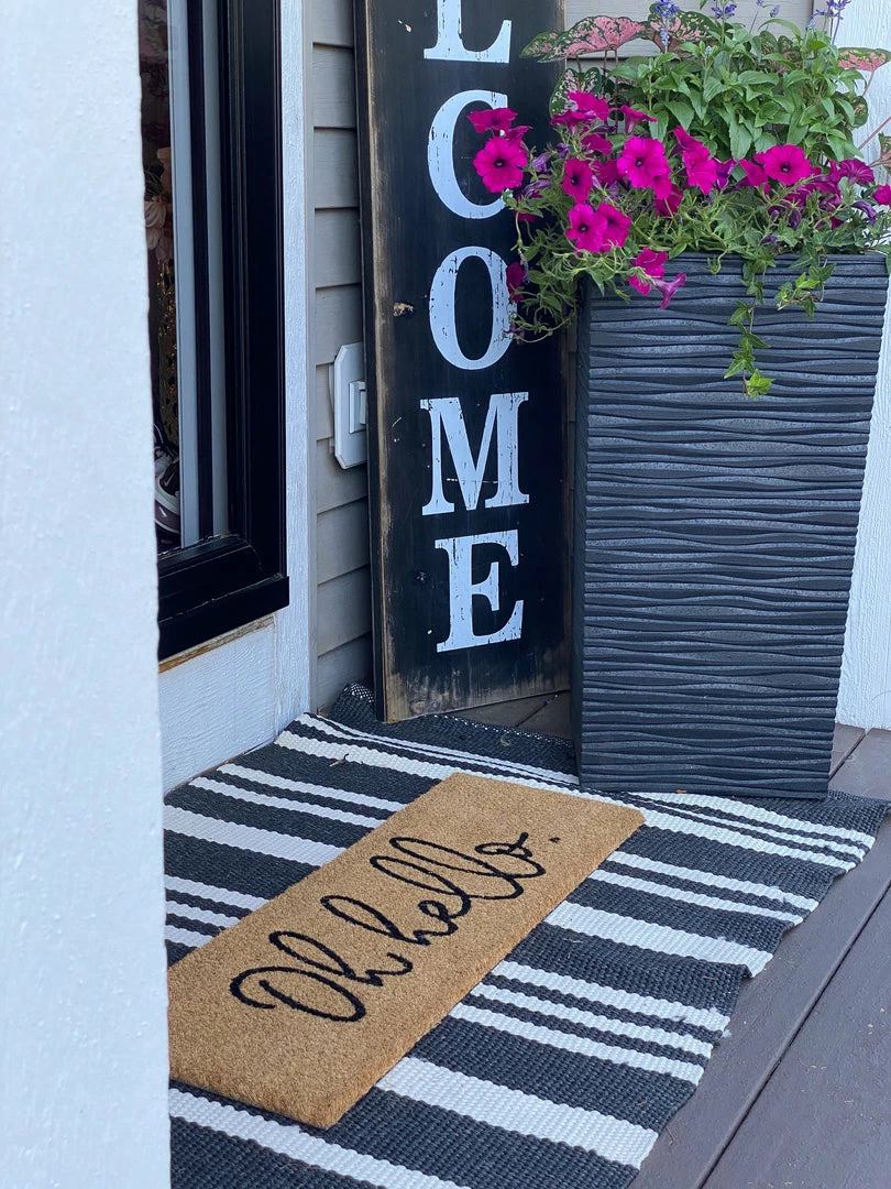 Description: Wow your guests from the moment the come to your home! This beautiful welcome mat offers a delightful welcome, and is long and narrow shape to fit in any doorway with ease!